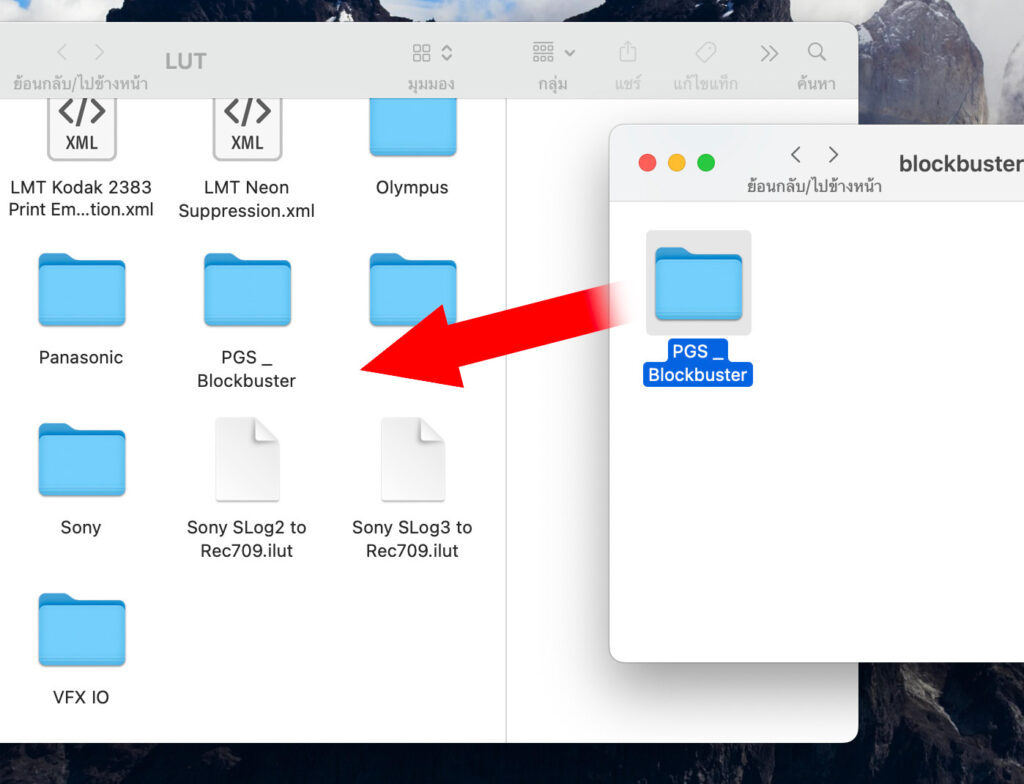 ทำการคัดลอกโฟลเดอร์ PGS_ Blockbuster ไปที่โฟล์เดอร์ไฟล์ LUT