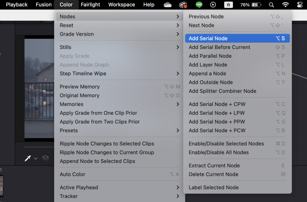 ให้ไปที่เมนู Color > Nodes > Add Serial Node