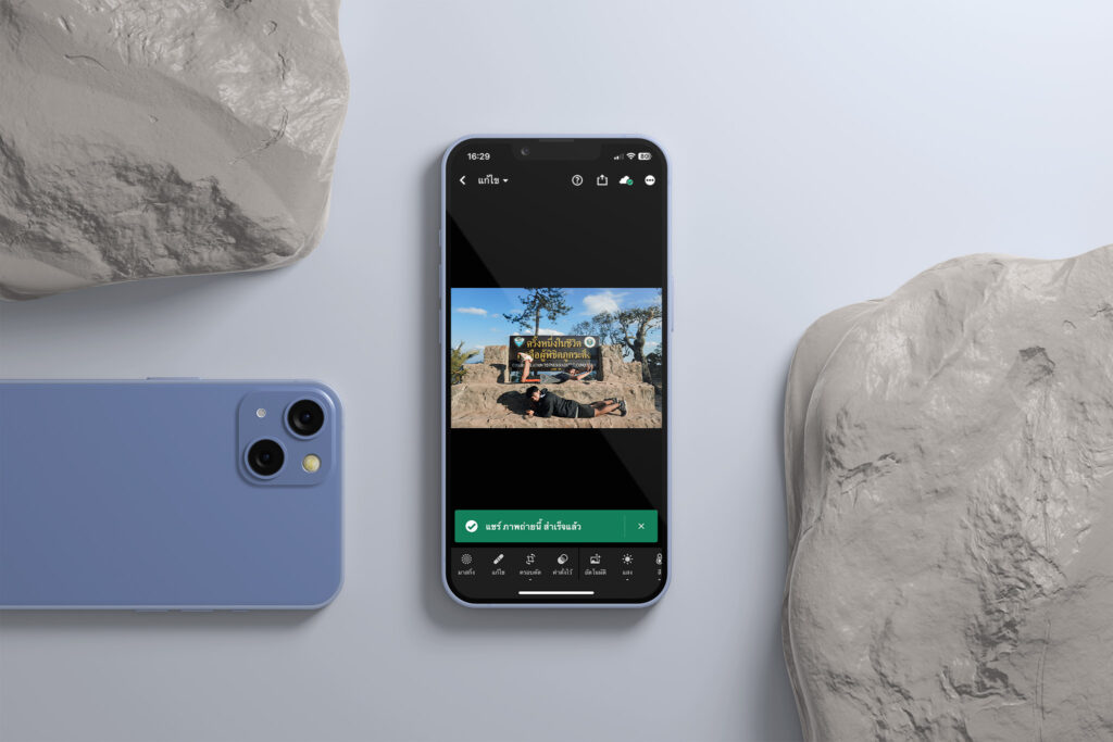 เปิดรูปที่เราทำการแต่งสี หรือปรับตั้งค่าต่างๆไว้แล้ว จากนั้นกดที่เครื่องหมาย “ส่งออก” ตามวงกลมในรูป